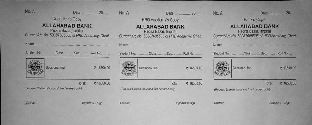 HRD Academy Account No. 50387605505 , Allahabad Bank, Paona Bazar Branch, Imphal